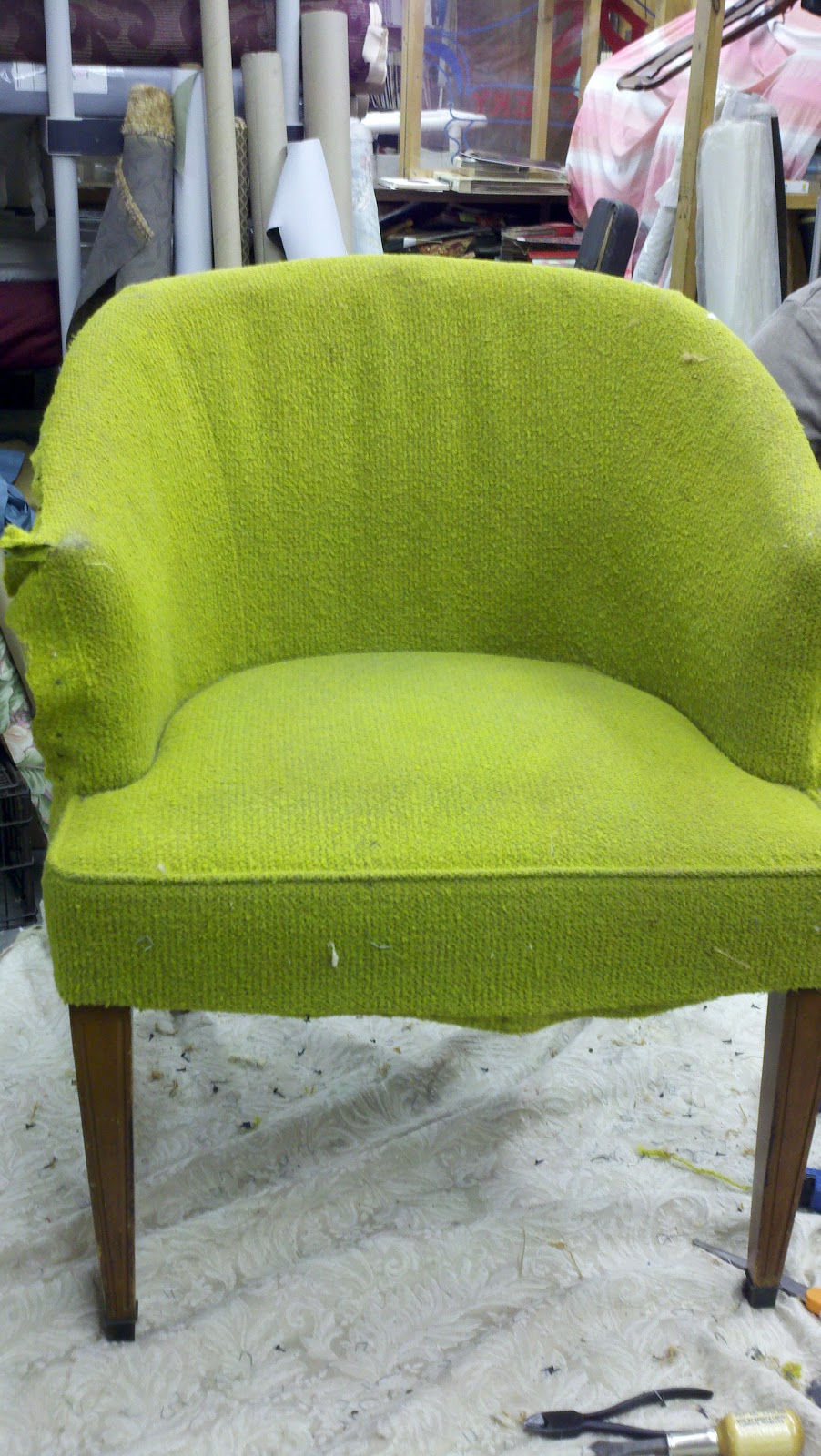 These retro barrel chairs belonged to my client's parents back in the 1960's. With great sentimental attachment, she wanted to utilize them in her home. Not fitting with her "cowboy chic" style, we had to get creative.